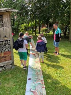 Im Forstamt Mirow erhielten die Kinder spannende Einblicke in die Bedeutung des Waldes für Mensch und Tier. Zwei Mitarbeiter führten uns durch das Gelände und die Räumlichkeiten des Forstamtes und erklärten dabei viele interessante Details zur nachhaltigen Waldpflege. Besonders eindrucksvoll waren die verschiedenen Werkzeuge, die bei der Arbeit im Wald zum Einsatz kommen - vom klassischen Spaten bis hin zu modernen Messgeräten.