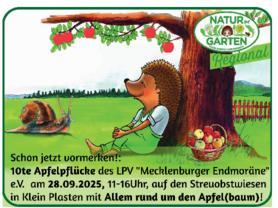 Mehr Infos & Tipps zum Thema Obstgarten erhalten Sie am Gartentelefon unter 039934-899646 sowie unter: www.natur-im-garten-mv.de