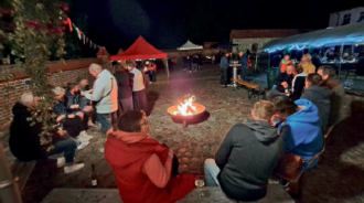 Von den kühlen Temperaturen ließen sich die Gäste jedoch nicht abschrecken, so wurden von vornherein Kissen, Decken und warme Kleidung mitgebracht. Einige nutzen die aufgestellten Feuerschalen um sich zu wärmen - so entstand eine schöne gemütliche