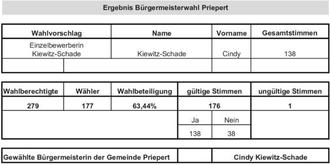 die Bürgermeisterwahl der Gemeinde Priepert ist abgeschlossen.