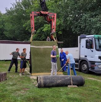 Dies gelang nur mit Hilfe des Kraneinsatzes, dankenswerter Weise durch Hartmut Labs.