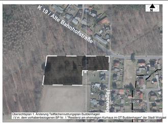 Übersichtsplan 1. Änderung Teilflächennutzungsplan Buddenhagen i.V.m. dem vorhabenbezogenen BP Nr. 1 "Residenz am ehemaligen Kurhaus im OT Buddenhagen" der Stadt Wolgast