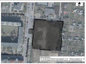 Übersichtsplan 13. Änderung Flächennutzungsplan i.V.m. Bebauungsplan Nr. 41 "Lebensmitteleinzelhandelsbetrieb östlich der Hufelandstraße"
