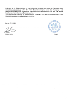 Die ortsübliche Bekanntmachung des Beschlusses erfolgt durch Abdruck im Bekanntmachungsblatt „Der Amtsbote Am Peenestrom“.