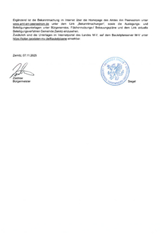 Die ortsübliche Bekanntmachung des Beschlusses erfolgt durch Abdruck im Bekanntmachungsblatt „Der Amtsbote Am Peenestrom“.