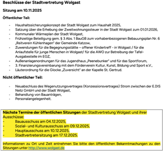 | - | Stadtvertretersitzung am 17.12.2025. |