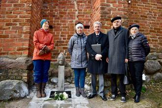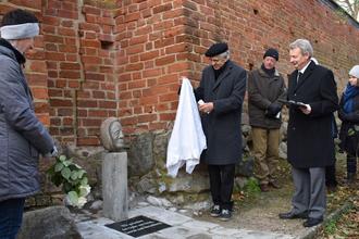 Diese Gedenkstätte wurde mit der erschaffenen und gestifteten Büste „Trauernder“ von Dr. Franz-Albert Tröster und mit einer Gedenktafel im Beisein von rund 30 Personen enthüllt. In den Ansprachen vom Bürgermeister Fred Gransow und Herr Dr. Tröster wurde unter anderem darauf verwiesen, dass sich auf Hass, Grausamkeit und Menschenverachtung keine Zukunft bauen lässt.