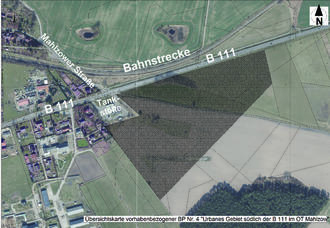 Übersichtskarte vorhabensbezogender BP Nr. 4 „Urbanes Gebiet südlich der B111 im OT Mahlzow“