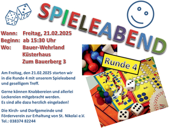 Wir laden herzlich, am 21. Februar 2025, zu unserer geselligen Runde im Küsterhaus/der Pilgerherberge von Bauer-Wehrland ein.