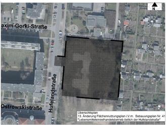 Übersichtsplan 13. Änderung Flächennutzungsplan i.V.m. Bebauungsplan Nr. 41 "Lebensmitteleinzelhandelsbetrieb östlich der Hufelandstraße"