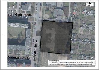 Übersichtsplan 13. Änderung Flächennutzungsplan i.V.m. Bebauungsplan Nr. 41 "Lebensmitteleinzelhandelsbetrieb östlich der Hufelandstraße"