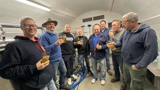 Hmmm, dieses Bierchen hat gezischt: Der Bürgermeister der Stadt Jarmen, André Werner, besuchte zusammen mit weiteren Bier-Liebhabern aus seiner Stadt den Wolgaster Brauverein. Wolgasts Bürgermeister Martin Schröter empfing die Gäste und führte sie in den Braukeller im Historischen Rathaus. Braumeister Thomas Krüger und der Vorsitzende des Wolgaster Brauvereins Arne Koplin demonstrierten, wie leckeres Pilsner entsteht.
