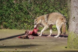 Dass Sonja überhaupt so alt werden konnte, spricht auch für die sehr guten Haltungsbedingungen in dem rund 5000 m2 großen und naturnah gestalteten Gehege. In freier Wildbahn werden Wölfe selten älter als elf oder zwölf Jahre, da sie sich teils bei Revierkämpfen schwer verletzen oder in hohem Alter nicht mehr selbst auf Nahrungssuche gehen können. Doch auch 16 Jahre ist für die in menschlicher Obhut lebenden Raubtiere nicht unbedingt gewöhnlich. Zum Geburtstag gab es deshalb die öffentliche Schaufütterung, in deren Rahmen die zuständigen Tierpfleger Dominik Breuhahn und Anette Tappert bereitwillig für Fragen und Auskünfte der Zuschauer zur Verfügung standen.