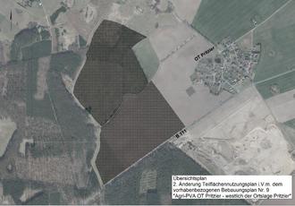 Übersichtsplan: 2. Änderung Teilflächennutzungsplan i.V.m. dem vorhabenbezogenen Bebauungsplan Nr. 9 "Agri-PVA OT Pritzier - westlich der Ortslage Pritzier"