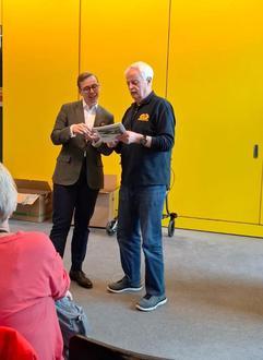 Zum Abschluss konnte der Landesverbandsleiter des DMB für Mecklenburg-Vorpommern, Wolfgang Telle, Herrn Amthor einen DMB Coin sowie die nagelneue Broschüre „Vom Panzerturm zum Marine-Ehrenmal“ übergeben. Auch über mögliche Beteiligung der neuen Bundesregierung an der Finanzierung der Rekonstruktion des Marineehrenmales in Laboe wurde gesprochen. Kam. Telle sprach eine Einladung zum Besuch des Peenemünder Marinemuseumsaus, die Herr
