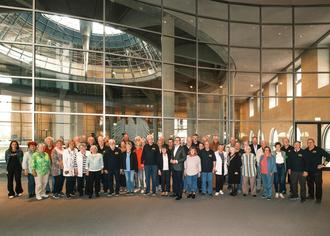 Einige der Mitreisenden hatten dann noch die Möglichkeit die Kuppel des Reichstagsgebäudes zu erklimmen. Anschließend fuhr uns der Bus in unser Hotel zur Übernachtung. Am zweiten Tag stand der Besuch des Verteidigungsministeriums an. Nachdem auch dort diverse Sicherheitsüberprüfungen durchgeführt wurden, nahmen wir in einem Vortragsraum Platz. Hier stellte uns der Oberstleutnant der Luftwaffe Scharnhorst die Arbeit des Ministeriums vor. Fragen unserer Mitreisenden zur neuen Wehrpflicht usw. konnte er uns gut beantworten. Aufgrund der kurzen Zeit, es standen nur 90 Minuten zur Verfügung, weil andere Besuchergruppen schon warteten, kamen die Fragen zur Deutschen Marine und andere für uns wichtige Themen zu kurz. Ein anschließender Besuch an der „Gedenkstätte der Bundeswehr“ war obligatorisch.
