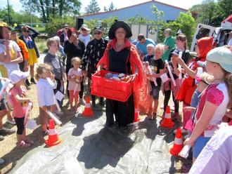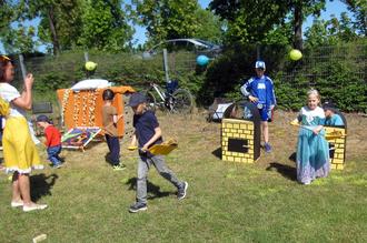 Es war ein wirklich „märchenhaftes" Kinderfest in Hohendorf auf dem Sportplatz. Rund 75 Kinder waren der Einladung der Initiative Kindertag gefolgt und durch die Bärenhöhle ins Märchenreich gelangt. Dort wurden sie von vielen Helfern in Märchenkostümen erwartet. Egal, ob Brot aus dem Backofen gerettet werden musste, die 7 Raben beim umgewandelten Stuhltanz weniger wurden, Türme bei Rapunzel in die Höhe schossen oder Murmeln aus der „Asche“ gelesen wurden. Auch durch den Reifenspiegel musste geklettert werden.