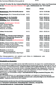 | Lassan, Bauhof Lassan -Schulstr. | 24.10. | 08:45 - 09:15 Uhr |
