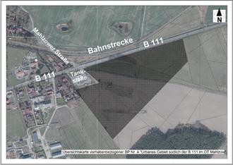 Übersichtskarte vorhabenbezogener BP Nr. 4 "Urbanes Gebiet südlich der B111 im OT Mahlzow"