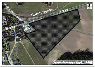 Übersichtsplan zum vorhabenbezogenen B-Plan Nr. 2 Sonder- und Mischgebiet an der B 111 im OT Mahlzow