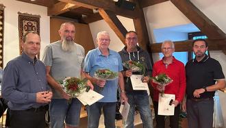 In der Sitzung der Stadtvertretung Wolgast am 09.09.2024 wurden vier Mitglieder für ihr jahrzehntelanges, ehrenamtliches Engagement geehrt. Toralf Lada (2.v.l.), Hans-Jörg Knuth (3.v.l.), Heiko Neubauer (3.v.r.) und Harald Heß (2.v.r.) erhielten die Ehrennadel des Städte- und Gemeindetages des Landes Mecklenburg-Vorpommern für 20 Jahre ehrenamtliche, kommunalpolitische Arbeit. Überreicht wurde sie durch den Bürgermeister der Stadt Wolgast, Martin Schröter (l.) und den Stadtvertretervorsteher der StV Wolgast, Ralf Pens (r.).