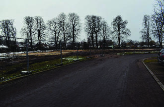 Die links vom Alten Wölzower Weg liegende Fläche, die zum Grundstück der ehemaligen Baustoffversorgung gehörte, wurde im Zuge der Abbruch- und Beräumungsmaßnahmen auf dem Grundstück der Deutsche Logistik Holding GmbH & Co. KG ebenfalls durch diese beräumt.