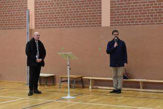 Daraufhin sangen die Kinder der vierten Klassen Lieder wie „Alte Schule, Altes Haus“ und sagten gemeinsam ein Gedicht auf. Anschließend wurde die Zeitkapsel mit selbstgemalten Bildern der Schülerinnen und Schüler bestückt und in die Bodenplatte des bald entstehenden Erweiterungsbaus der Grundschule einbetoniert. Neben dem Bürgermeister Christian Greger, Minister Christian Pegel und Jessica Markmann, Beigeordnete im Verwaltungsvorstand des Landkreises Ludwigslust-Parchim und 2. Stellvertreterin des Landrates, durften auch die Kinder selbst Hand anlegen. Die Schülerinnen und Schüler der Grundschule verabschiedeten sich nun, um mit dem Bus nach Hause zu fahren. In der Turnhalle folgte dann die Rede von Bürgermeister Christian Greger. In seiner Rede bedankte er sich bei allen, die das Projekt mit vorangebracht und unterstützt haben, erklärte die Ziele, welche mit dem Anbau erreicht werden sollen. Zudem erläuterte er den angestrebten Zeitrahmen der Bauarbeiten und erklärte, aus welchen Fördertöpfen finanzielle Mittel geflossen sind. Abschließend betonte er: „Der Grundstein, den wir hier heute legen, ist ein weiteres, sicher ein besonders schönes Element im Mosaik einer sehr durchdachten Schul-, Bildungs- und Erziehungslandschaft. Der Grundstein, den wir heute legen, ist mit anderen Worten Ausdruck einer optimistischen, mutigen und klugen Investition dieser Stadt in das Beste, was wir alle haben: unsere Kinder, unsere Jugendlichen, unsere Zukunft.“ und übergab dann das Wort an Minister Christian Pegel. Auch dieser ließ es sich nicht nehmen, noch einmal auf die vorangegangenen Gespräche, welche sich über einen Zeitraum von mehr als fünf Jahren erstreckten, aufmerksam zu machen. Zudem bedankte er sich bei den Stadtvertretern Wittenburgs, für ihr Festhalten an diesem Projekt, denn nur diese Beständigkeit habe dazu geführt, dass es nun in die Tat umgesetzt werden kann! Denn auch für ihn haben Vorhaben wie diese eine enorme Wichtigkeit und deshalb sei er froh, dass der Startschuss nun gefallen ist.