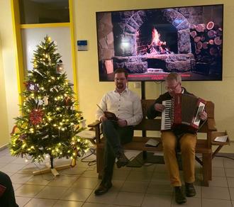 Waffelduft, Lichterglanz und weihnachtliche Klänge im Foyer des Verwaltungsgebäudes – manche Besucher waren sichtlich überrascht, andere kamen am 9. Dezember ganz bewusst in die Molkereistraße. Schon seit Jahren nimmt die Stadtverwaltung am Lebendigen Adventskalender der Wittenburger Kirchengemeinden teil; und auch dieses Jahr erklang ab 18:00 Uhr das Akkordeon, mit dem Pastor Martin Waack die Weihnachtslieder begleitete.