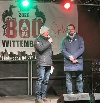 Klaus Krohn und Jens Handke für die Moderation auf der Bühne und