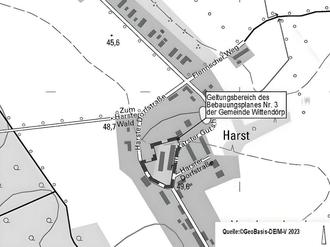 Der räumliche Geltungsbereich des Bebauungsplanes Nr. 3 der Gemeinde Wittendörp im Ortsteil Harst ist dem nachfolgenden Übersichtsplan zu entnehmen.