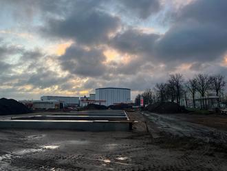 Die Bodenplatten konnten bereits Ende 2022 fertiggestellt werden. Jetzt ruht die Baustelle aufgrund der Witterungsverhältnisse, im Frühjahr soll es aber weitergehen.