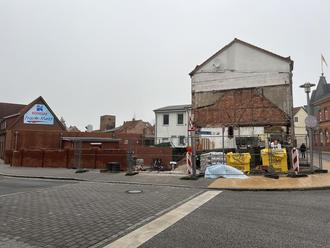 Im Bereich der Ecke Bürgermeister-Ahrens-Ring / Große Straße stehen jetzt noch die Errichtung des Ersatzneubaus und die Fertigstellung weiterer fünf Stellplätze aus.