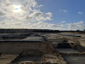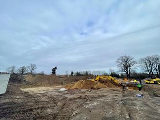 Mit den Baumaßnahmen zur Errichtung der Logistikhalle wurde durch die Deutsche Logistik Holding GmbH & Co. KG (DLH) die ZECH Bau Bielefeld als Generalunternehmer beauftragt. Die ersten Fundamente wurden betoniert, die ersten Kanäle wurden verlegt. Zum Ende des ersten Quartals 2023 sollen die ersten Stützen geliefert werden. Einer der bekanntesten und traditionsreichsten Bräuche, die Grundsteinlegung, mit der symbolisch mit den Arbeiten zum Bau der Logistikhalle begonnen wird, befindet sich in Vorbereitung.