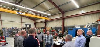 Inhaber Marcus Göhner (4.v.l.) beim Unternehmerrundgang mit den Sitzungsteilnehmern