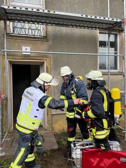 Der Angriff, ausgerüstet mit Atemschutz, bekommt seinen Einsatzbefehl