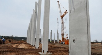 Die ersten Stützen für die Hallen des Logistikcampus stehen bereits direkt an der Autobahn FOTO: MAYK POHLE