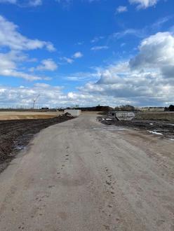 Die Grundsteinlegung, mit der symbolisch mit den Arbeiten zum Bau des Logistikcampus Wittenburg begonnen wird, erfolgte am 21. März 2023. Die ersten Stützen für die Logistikhalle wurden bereits, gut sichtbar von der Autobahn, errichtet.