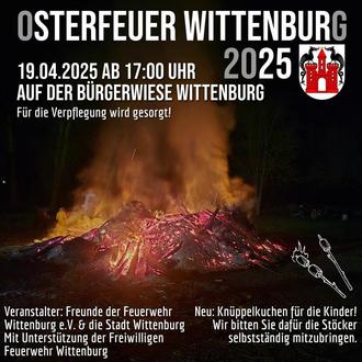Alle anderen bekommen natürlich auch etwas zu essen (und zu trinken). Darum kümmert sich wieder der Verein „Freunde der Feuerwehr Wittenburg e.V.“. Die Stadt Wittenburg als Veranstalterin dankt dem Verein und der Freiwilligen Feuerwehr ganz herzlich für die Unterstützung dieses Events und wünscht viel Spaß beim rituellen Start in den Frühling.