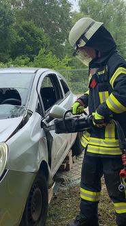 Eine Person konnte unter Anleitung der Lehsener Kameraden aus einem bereitgestellten PKW gerettet werden.