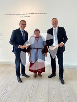 Ein weiterer großer Unterstützer ist die Stern-Wywiol Gruppe zu der das MehlWeltenMuseum und SternMaid gehören. Auch dort ist die Überraschung bei der Einladungsübergabe am 8. Juni gelungen. Eine slawische Fürstin ist sicher noch nie am Ende einer Tagung erschienen, um dem CEO Torsten Wywiol und Mark Riemer, Mitglied der Geschäftsführung von SternMaid, eine mittelalterlich gestaltete Einladung zu überbringen.