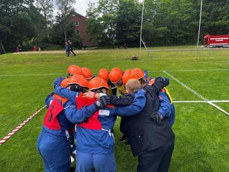Die Jugendfeuerwehr Boddin motiviert sich nochmal vor dem wichtigen Lauf