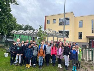 Am 04. Juni 2024, vor Schulbeginn, haben unsere Kinder dann gemeinsam mit dem Hausmeister, Herrn Kossack, Frau Bothe - ihrer Klassenlehrerin - sowie mit Frau Sagemüller einen Ginkobaum vor dem Schulgebäude gepflanzt.