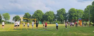 Zum 1. Anspiel auf dem neuen Volleyballfeld waren alle Mitglieder des Dorfvereins und andere Interessierte auf den Sportplatz am Freitagabend eingeladen. Ob Mann oder Frau, ob Jung oder Alt, ob Groß oder Klein; jeder konnte dabei sein. Die Teams wurden vor Ort gebildet. Kniffelige Spielzüge, hohe Sprünge und viele hart erkämpfte Ballkontakte sorgten für eine spannende Spielatmosphäre bei den Teams.