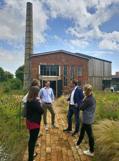 Stadträtin Vivien Lau, Elephant-Gin-Gründer Robin Gerlach, Investor Carl-Lambert Leisewitz, Bürgermeister Christian Greger und Tessa Gerlach (v.l.n.r.)