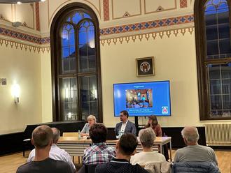 Bürgermeister Christian Greger (M.) und die beiden Stadträtinnen Jana Berger (li.) und Vivien Lau bei der letzten Einwohnerversammlung
