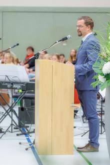 Als Gäste nahmen die Bürgermeister, Herr Greger und Herr Bartels, der Wittenburger Bürgervorsteher Herr Schulz, der Schulelternrat und die Vorsitzende des Schulfördervereins, Frau Struck, die Einladung der Schule gerne an und gaben der Veranstaltung den würdigen Rahmen, den sie verdient hat. Um die musikalische Begleitung kümmerten sich die Musikgruppen beider Schulteile von Klasse 5 bis 11, die mit Kinderchor, Gitarren, Flöten, Keyboards und Band eine tolle Abwechslung boten.