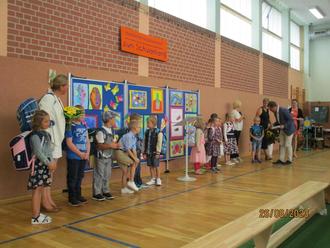 Voller Erwartung kamen die Kinder von 5 neuen Klassen am Samstag dem 26.08.23 mit ihren Angehörigen in die Turnhalle am Friedensring in Wittenburg. Sie alle starteten mit ihren neuen Klassenleiterinnen Frau Behm, Frau Tick, Frau Brandt, Frau Lau und Frau Gockel in das 1. Schuljahr. Begrüßt wurden sie von der Direktorin Frau Sagemüller und dem Bürgermeister Herrn Greger. Dieser brachte die Fibel als Geschenk für die Schulanfänger mit, mit der sie nun das Lesen erlernen werden. Tom Langediekhoff, ein ehemaliger Schüler, und Schüler der 2. Klassen erfreuten alle Zuschauer mit kleinen Programmen. Anschließend trafen sich alle neuen Klassen das erste Mal gemeinsam in ihrem Klassenraum, um danach ihre schönen und lang ersehnten Schultüten in Empfang zu nehmen.