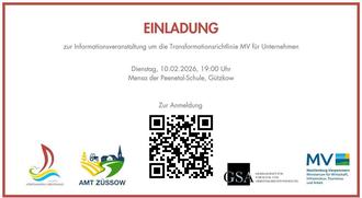 Die wirtschaftliche Zukunft unserer Region entsteht hier vor Ort, in den Unternehmen, die täglich Neues wagen, Ideen entwickeln und Verantwortung tragen. Damit Sie in dieser Zukunftsgestaltung unterstützt werden, möchten wir Sie herzlich zu unserer Informationsveranstaltung zur neuen Transformationsrichtlinie MV einladen.