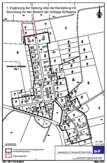 Der Vorhabenträger stellt an das Amt Züssow den Antrag, eine 1. Ergänzung der Klarstellungs- und Abrundungssatzung für den Bereich der Ortslage Schlagtow der Gemeinde Groß Kiesow aufzustellen.