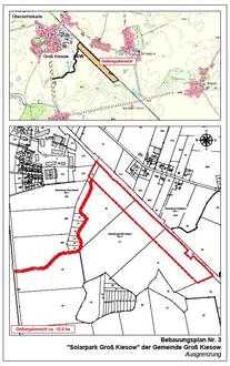 Mit Beschluss vom 28.02.2022 hat die Gemeindevertretung der Gemeinde Groß Kiesow die Aufstellung des Bebauungsplans Nr. 3 „Solarpark Groß Kiesow“ beschlossen. Diese wurde gemäß § 2 Abs. 1 BauGB i.V.m. der Hauptsatzung der Gemeinde Groß Kiesow am 13.04.2022 im „Züssower Amtsblatt“ Nr. 04 bekannt gemacht.